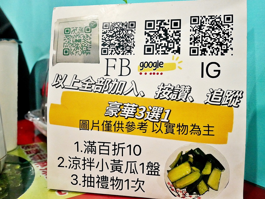 想免費加菜或拿優惠,加入店家的FB+IG+google,就可以從底下的好康三選一!