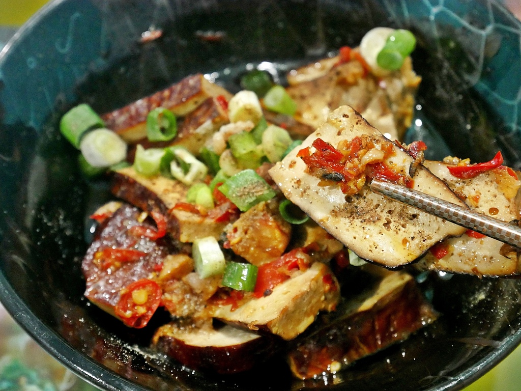 豆干剛入口不會太辣,但吃到第二塊就知道後勁很強,豆干沒有過度調味,仍能吃到黑豆干特有的香氣。