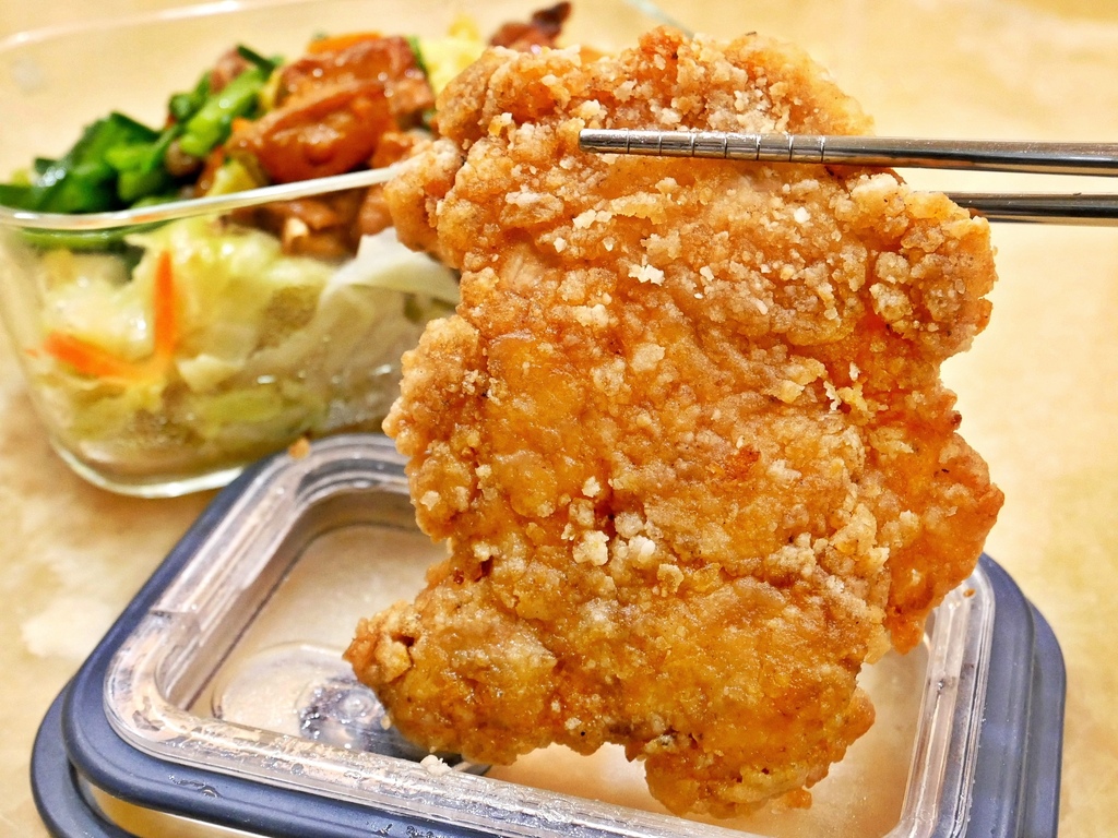 雞腿比較小支一點,麵衣不算很附著但意外不油膩,肉質細緻口感很不錯,鹹香夠味又吃得到肉汁,如果大支一點就完美了。