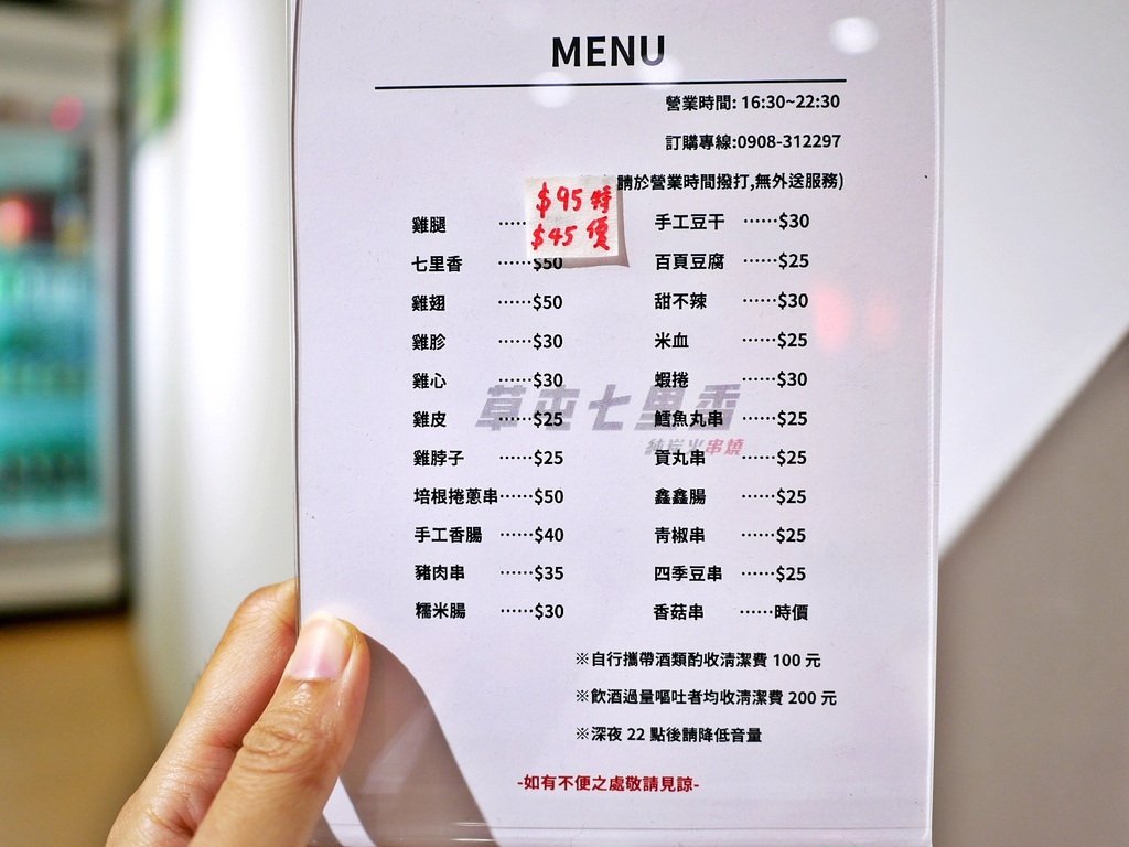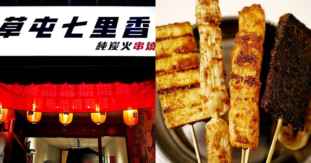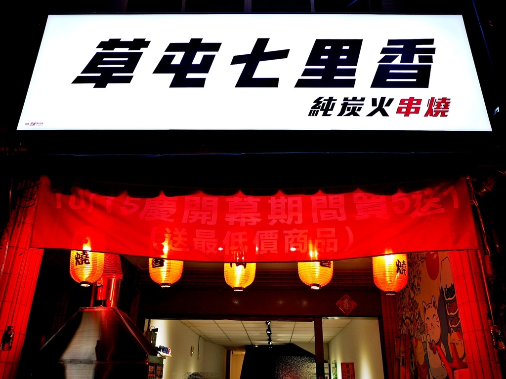 草屯的朋友有留意到芬草路上新開一間串燒嗎? 靜香昨天看到有開幕活動立刻衝,先來幫大家踩點一下。「草屯七里香」主打純炭火生肉直烤,搭配上鹹甜帶點辣感的醬汁還蠻夠味,雖然炭香不算濃郁,但整體口味不錯,食材的軟硬度也都掌握得不錯,其中糯米腸的吃法超特別!
