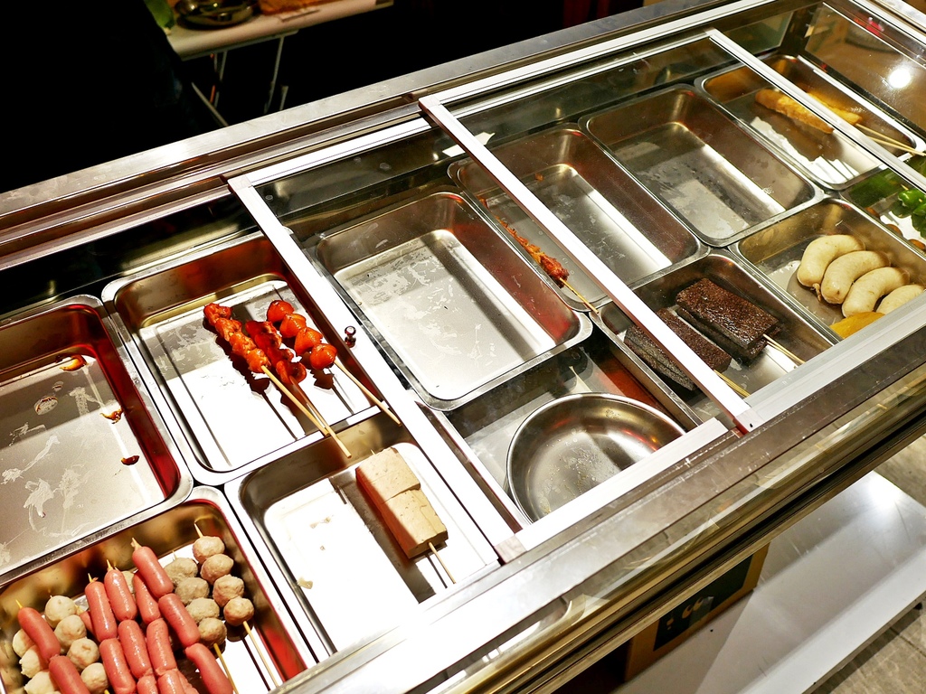 「草屯七里香」位在芬草路靠近太平路上,店內有提供用餐空間,串燒通通放置在櫥窗內讓顧客自行夾取。