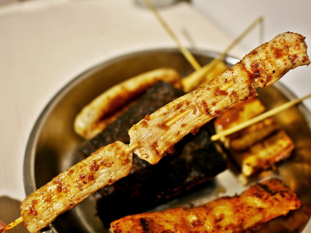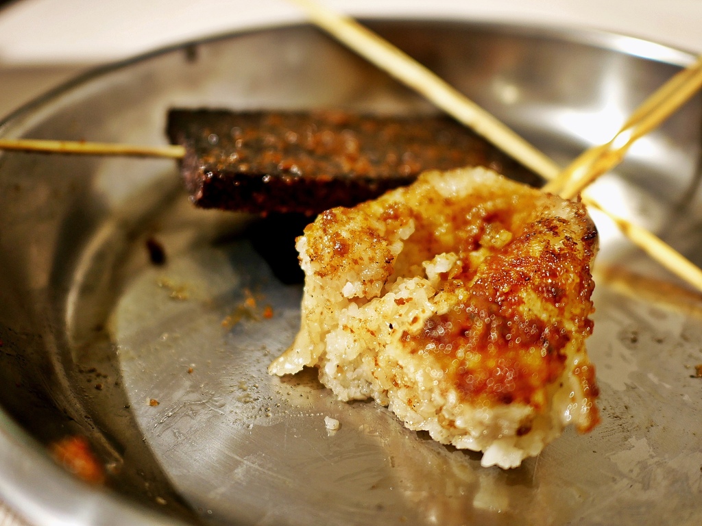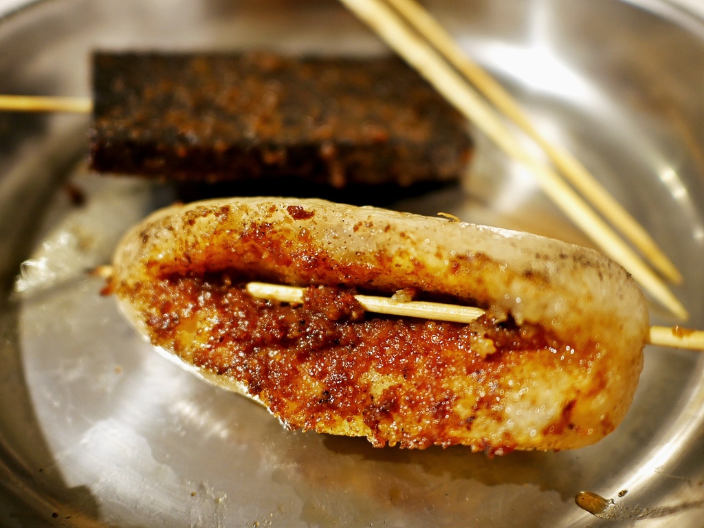 米血沒有烤到太乾,但相對少了一些表面的酥脆感,沒有很入味,是五串裡面比較中規中矩的。