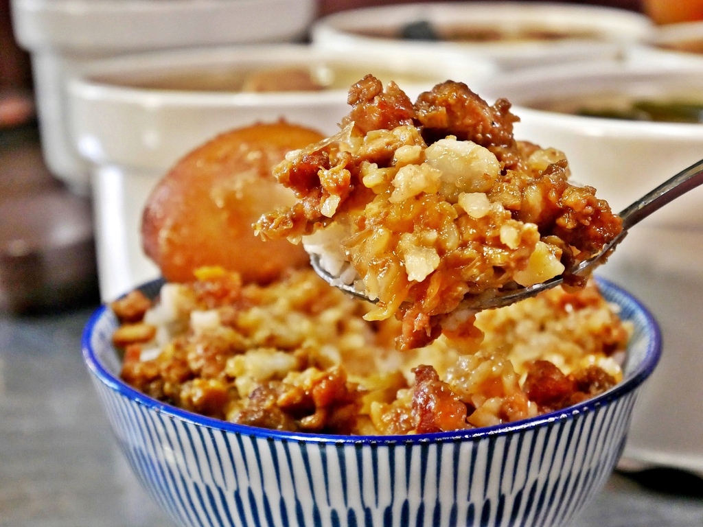 肉燥飯的肉燥雖是瘦肉居多,但口感完全不乾澀,鹹度適中、濕潤度也很足相當好吃。米飯不會太爛,口感保留點彈性不會爛爛的,好吃!敢吃辣的朋友不妨來勺店家自製的手抄辣椒,辣度不低很夠味喔。