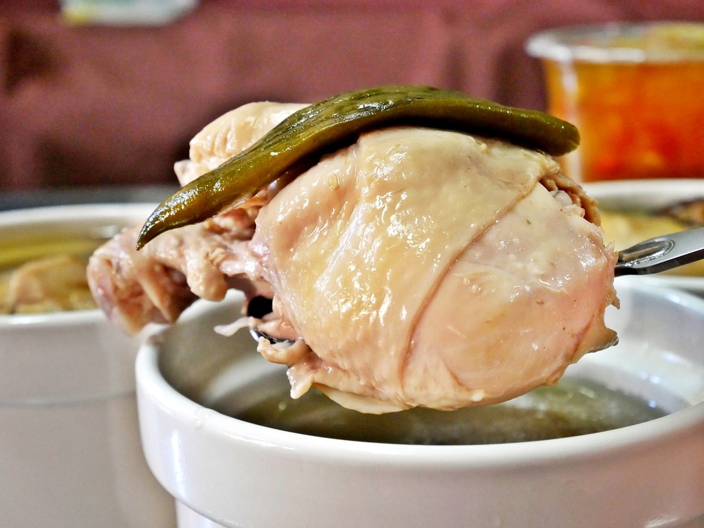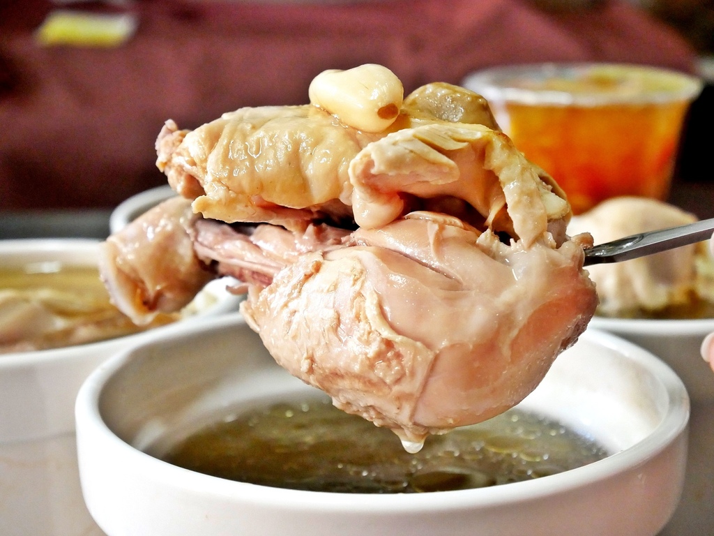雞湯內使用的雞腿肉重達半斤相當有份量,老闆堅持使用最新鮮的溫體雞,並在料理的時候多加了一道工法,將雞腿上多餘的油脂剪除,不僅讓肉吃起來較清爽,雞湯也不會油膩膩更耐喝。