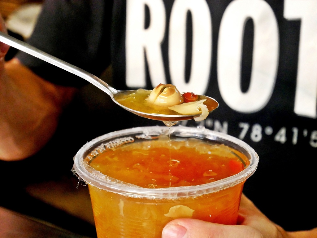 靜香平時就喜歡煮蒜頭雞來喝,沒想到多了蛤蜊的香氣這麼加分。蒜頭雞湯味道很夠但蒜味又不會太嗆,是溫和卻不失風味的湯頭。底部的蒜頭燉煮到很綿密,入口即化超好吃。