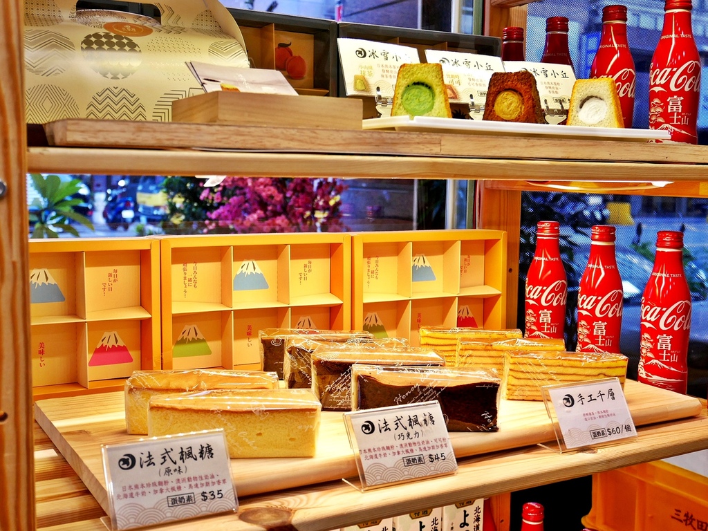 富士山磅蛋糕是店內主打,口味多元選擇超豐富,不只能零售,也有推出禮盒組,節日送禮好適合,聖誕節的交換禮物想不到買什麼,直接挑一盒就對了,絕對被大家搶著抽中。