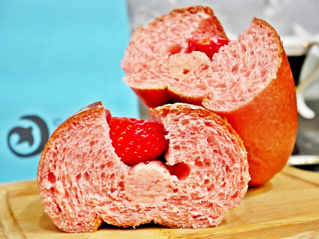 這款麵包也是草莓季的主打之一,雖然外觀看起來比另外兩款樸素不少,但味道卻絲毫不遜色喔! 軟歐的口感鬆綿不失Q度,入口能品嚐到豐富的草莓果香,以及麵粉獨有的風味,是款越嚼越能體會其迷人之處的麵包。