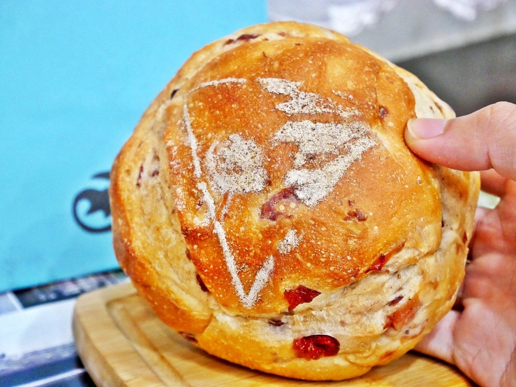 軟歐外層夾了不少果乾,切開才知道裡面更有料,滿滿草莓及蔓越莓果乾填入其中,每一口都吃得到,隨著咀嚼能感受到果香在口中綻放,必須來一個!