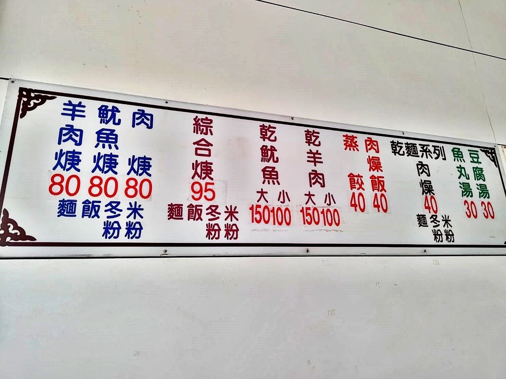 先附上菜單,店內除了肉羹、魷魚羹和羊肉羹之外,也有販售蒸餃和肉燥飯,選擇不算多但羹麵很推一定要試試。