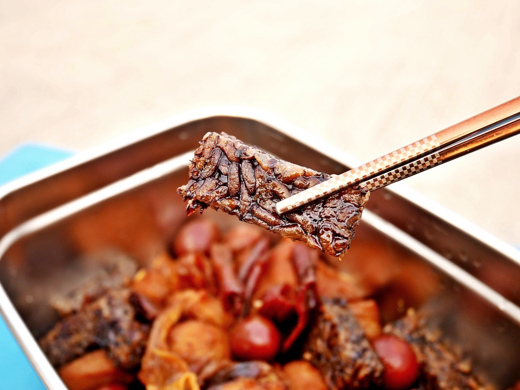 豆干口感蠻濕潤,不是黑豆干,吃起來很嫩又帶點嚼勁,而且咬下挺多汁,好吃。