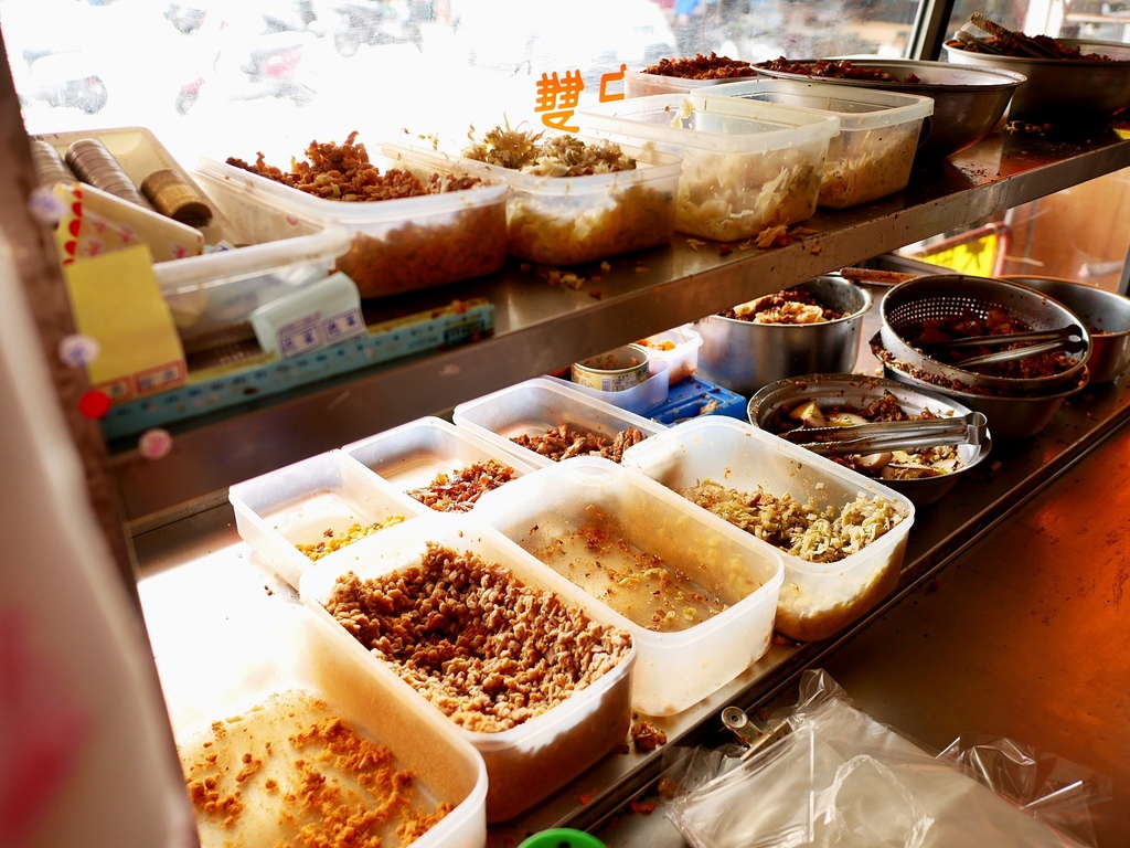 架上的配料超多種,靜香只點過三種口味,所以不清楚是不是每種配料都一樣,但基本的肉鬆、酸菜、滷蛋、菜脯應該都固定,至少以我買到的三種口味來說,每次都有看到這些食材。
