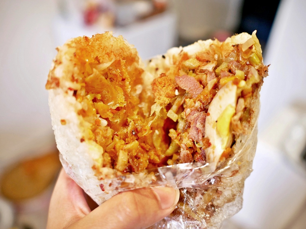中興飯糰的加大跟原本大小差沒有很多,裡面吃得到培根段、柴魚的香氣,鹹鹹香香又不重口,讓人會想一口接一口,加上辣菜脯更夠味,難怪每次男友都特別指定要加辣。但店家的白米以我吃過的飯糰來說不算Q,追求Q彈米感的朋友可以試試是否符合你的預期。