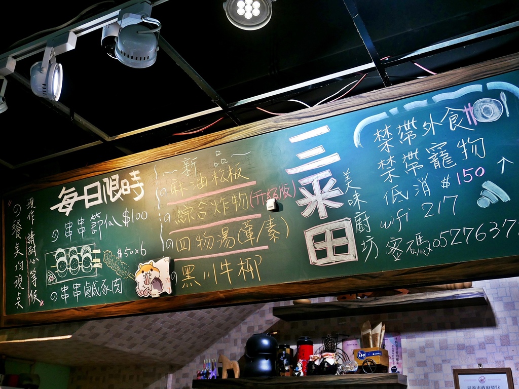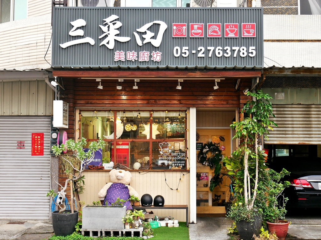 「三采田美味廚坊」距離嘉北火車站、耐斯廣場 和 埤子頭植物園都不遠,是到嘉義旅遊時,除了小吃的另一種選擇。雖然三采田的地點不起眼,門面也很樸素,但店內布置相當溫馨,甚至還貼心準備兒童椅跟書籍,難怪有不少爸媽專程帶小朋友來用餐。