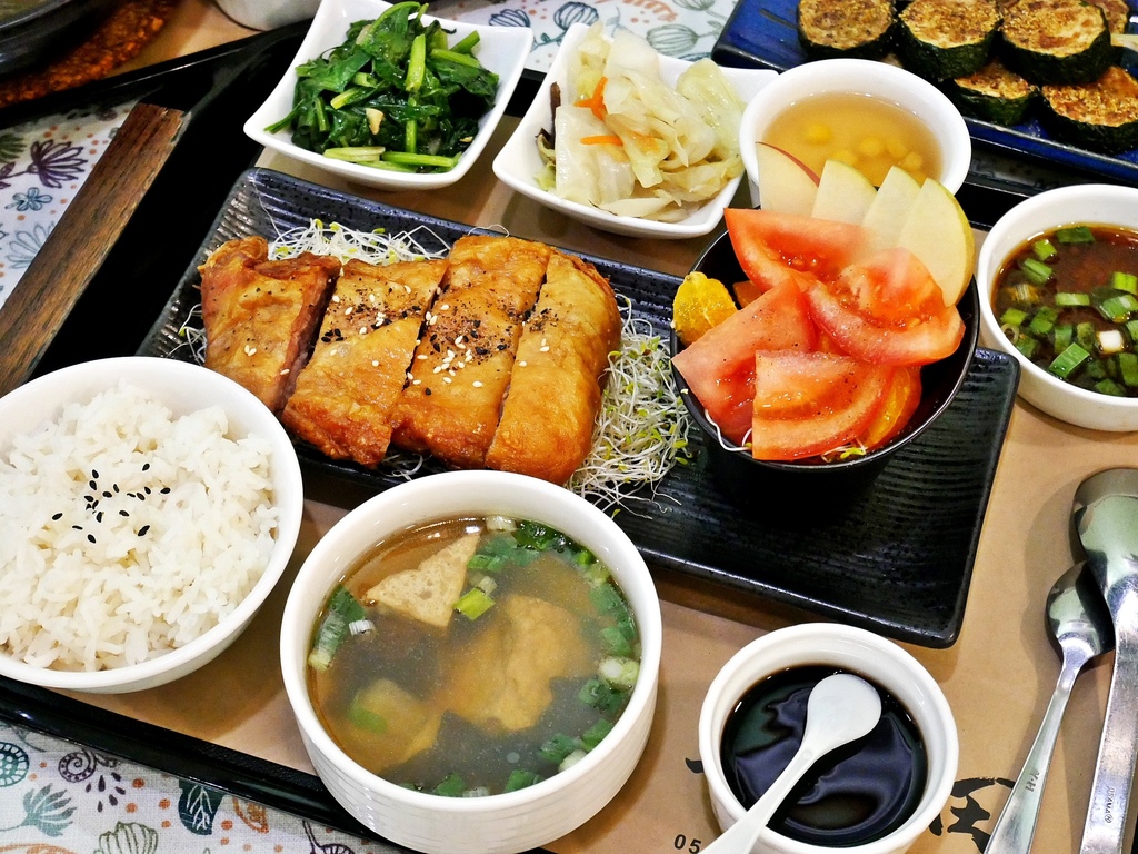簡餐的套餐內容蠻豐富,除了主食之外,還有清甜的油豆腐湯、茶碗蒸、蔬菜、沙拉等等,份量蠻剛好。如果跟三五好友同聚,還能再多點一兩道小食分享著吃更豐盛。