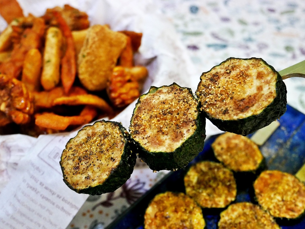 櫛瓜烤到剛剛好,口條軟而不爛,而且保水度超高。調味微微帶點胡椒辣感,以及些許義式香料的味道,相當涮嘴我個人很喜歡。