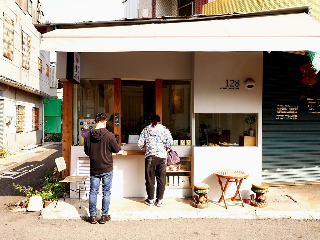 台南好多外帶咖啡小店,上次去吃「鹽埕北極殿臭豆腐」順路蒐集旁邊的「和平咖PeaceCoffee」,簡約的店名搭配上純白小巧外觀,跟古樸的周邊形成強烈對比,但卻不顯違和,反而成了一道風景。和平咖以外帶店形式經營,旁邊提供兩個座位,但很曬且空間不大,所以客人仍是以外帶為主。