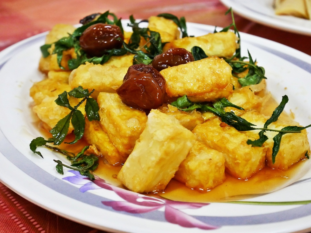 梅子豆腐的醬汁偏稠一些,醬汁蠻酸香,但似乎不只梅子的酸度,醬汁稍稍沒那麼合我胃口。