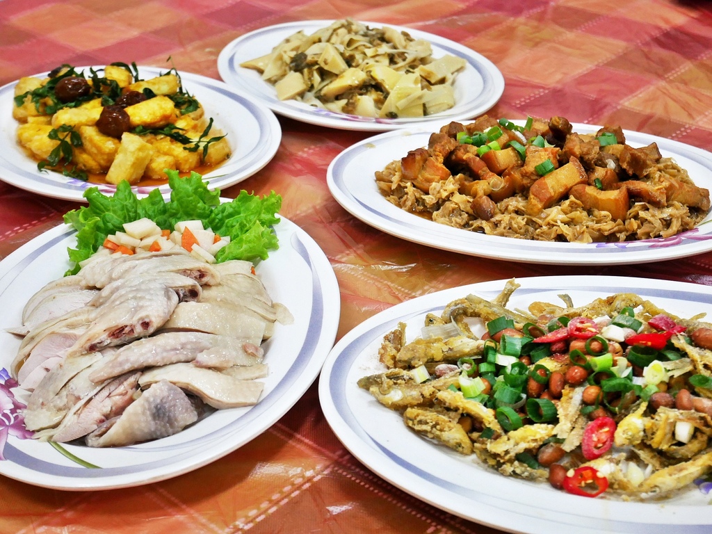 合菜風味餐一桌10人/ 3000元,內容含8菜1湯及白飯吃到飽,另有2~6人的合菜搭配記得提前預訂,此外花季期間不提供素食餐點喔。