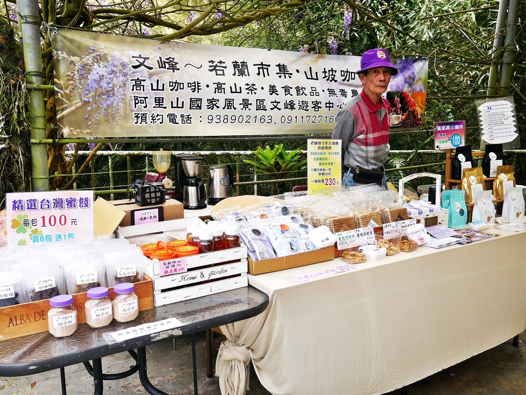 吃飽飯可以到老闆設置的小攤位挖寶,不少伴手禮都好平價,蜜餞、高麗菜乾、咖啡等等都很平價,想要一次購齊,也能到阿里山國家風景區內的若蘭市集逛逛,裡面產品更多元喔。