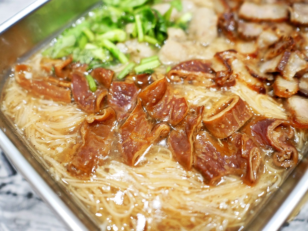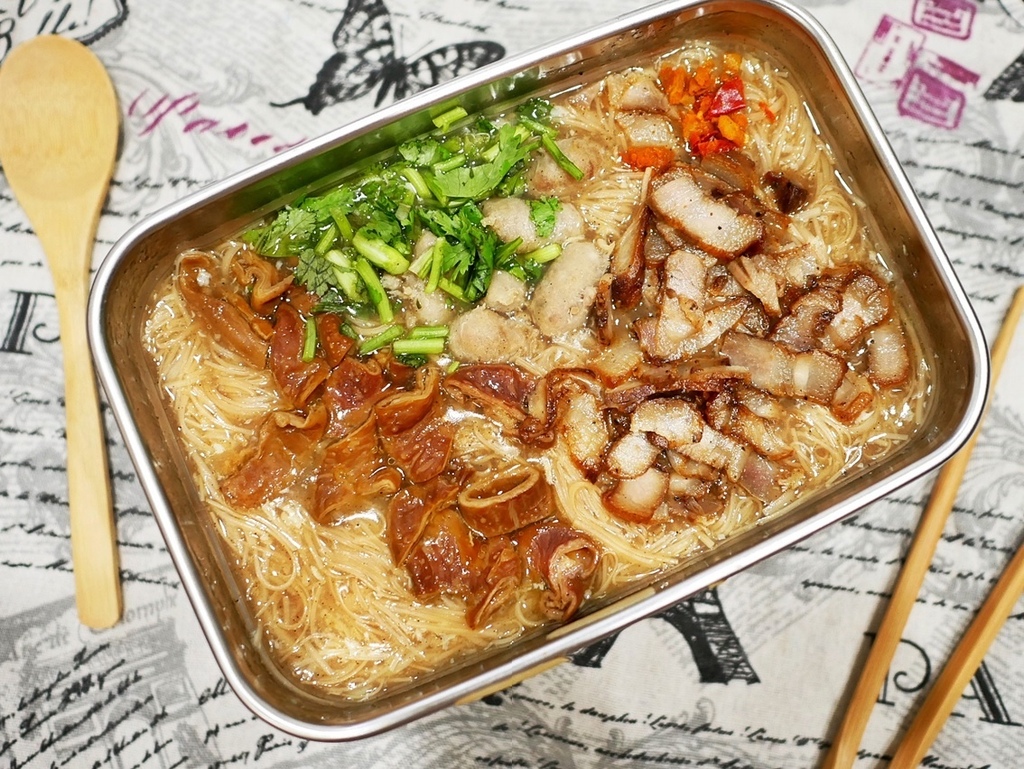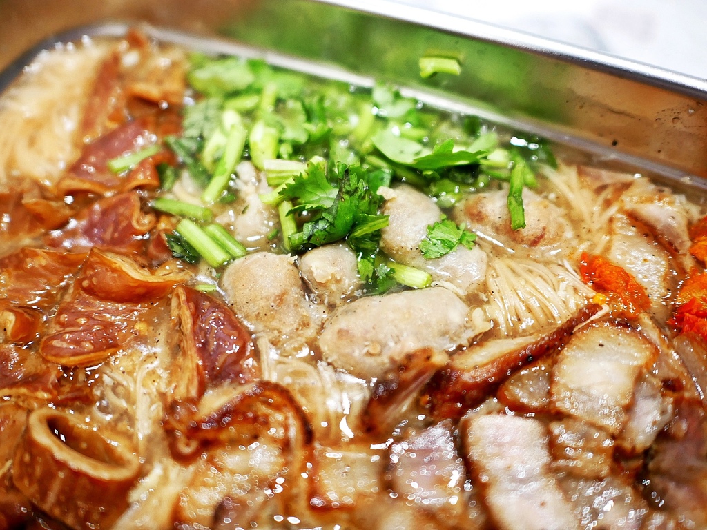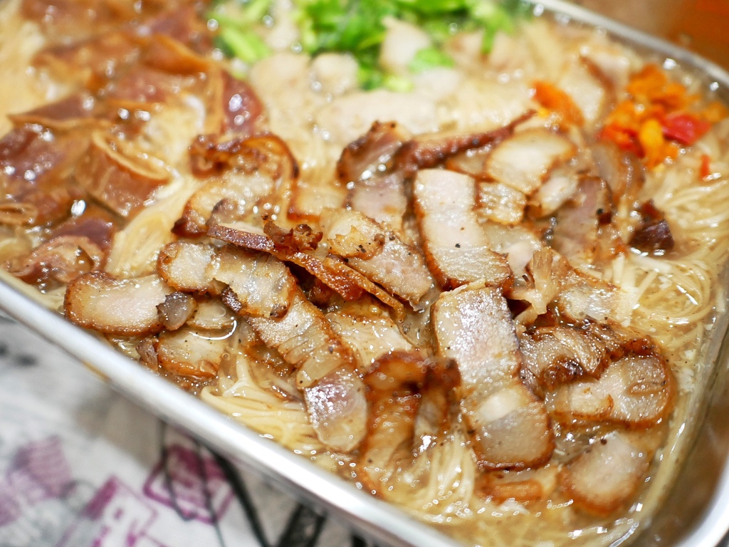 鹹豬肉切成片狀,既不帶軟骨且豬皮軟硬適中好入口,吃起來不會硬梆梆,且調味鹹香不厚重,配著麵線一口接一口很好吃。