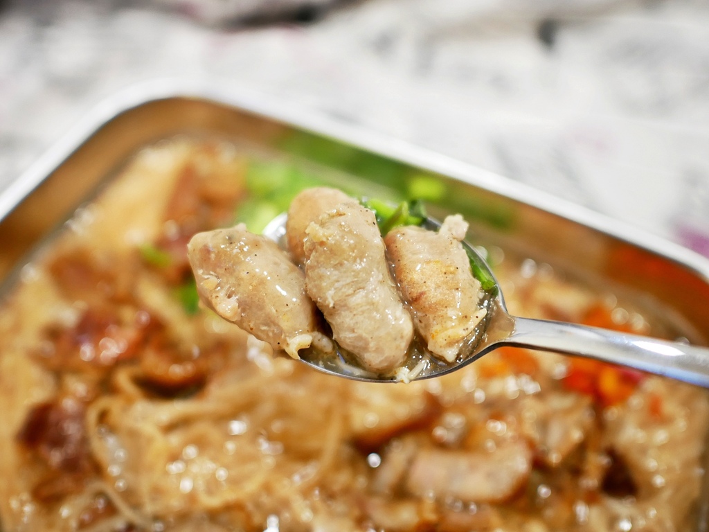 大腸不夠Q有點可惜,口感略微偏軟少了點嚼勁。不過滷到相當入味,單吃稍稍偏鹹,拌著麵線一起品嘗就蠻提味。