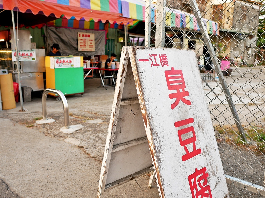 一江橋臭豆腐位在東平路上,可以說就在一江橋的旁邊,不過內縮又被攤子擋著,不是專程來找很容易錯過。半戶外的用餐空間有提供幾張桌子讓顧客用餐,臭豆腐就是要坐下來品嚐熱騰騰出爐的狀態才過癮。