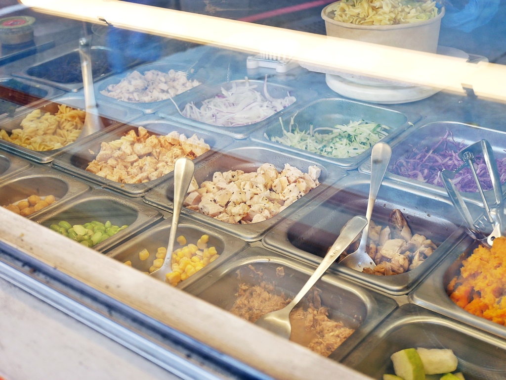 沙拉能搭配的食材很多元,除了生菜之外也有依時令做變化的水果能挑選,而且看起來都很新鮮,透過櫃檯的玻璃櫥窗一目了然。