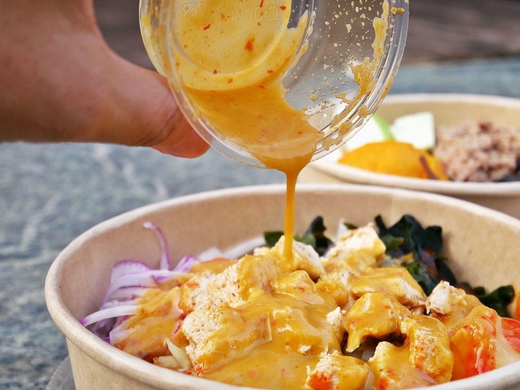 淋醬的部分可以依照自己的喜好做更換,其中靜香特別喜歡快餐慢食的泰式酸辣醬,醬香濃郁而且酸辣夠味,卻又不是極重口的路線,特別適合黏膩的夏天品嘗。