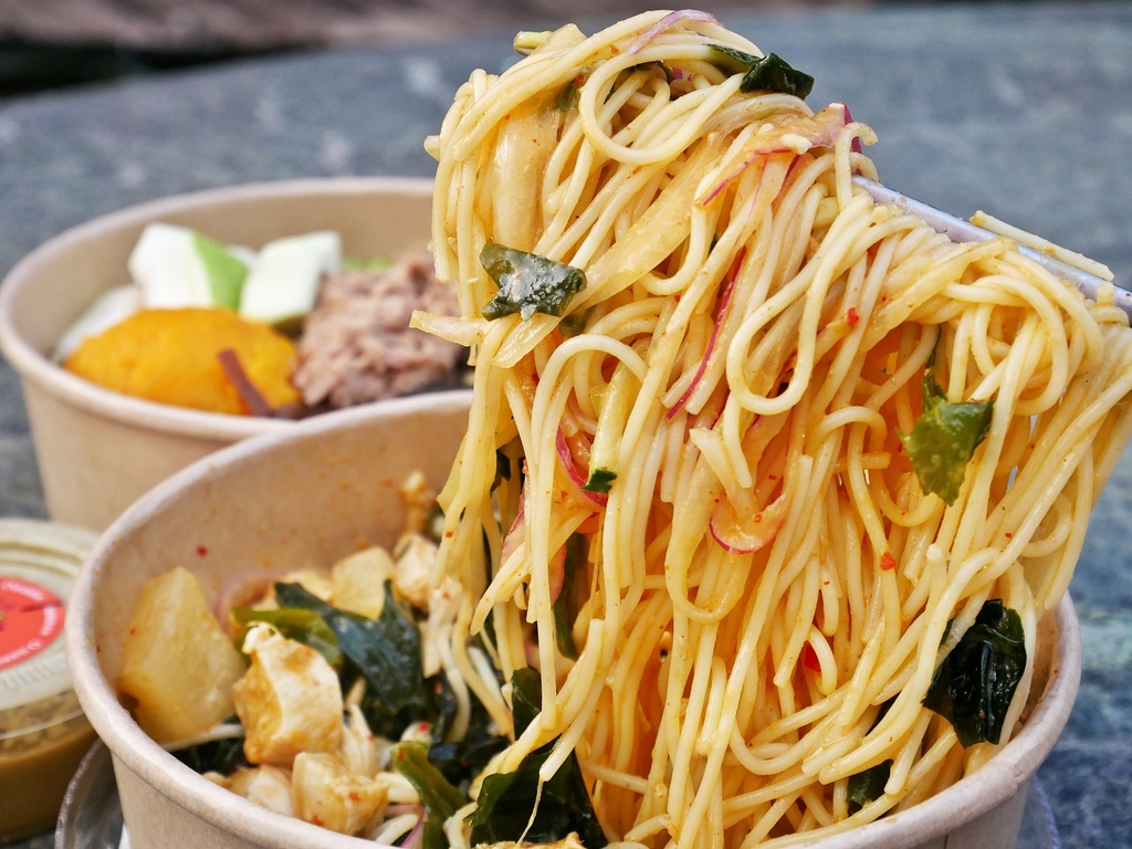 Q彈冷麵裹著醬汁,提味又不厚重,每一口都能吃到泰式酸辣的香氣,夏天就是要這一味!