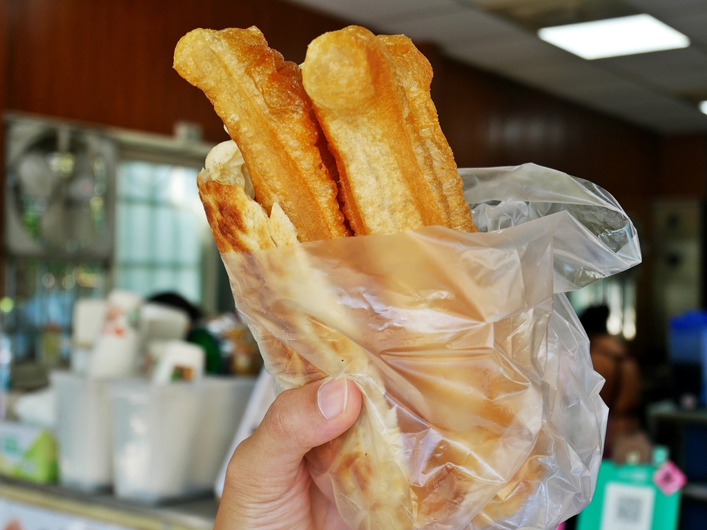 店家的微糖豆漿不膩口,雖然稱不上濃郁但豆香順口蠻耐喝,朋友拿來蘸油條好好吃,果然豆漿油條是絕配。初訪點的米漿非常濃郁,甚至稍微偏稠,但好險不厚重,米漿香氣很夠又不會太甜還不賴。
