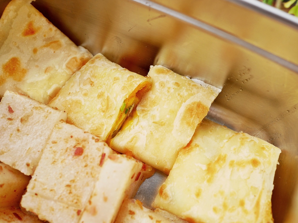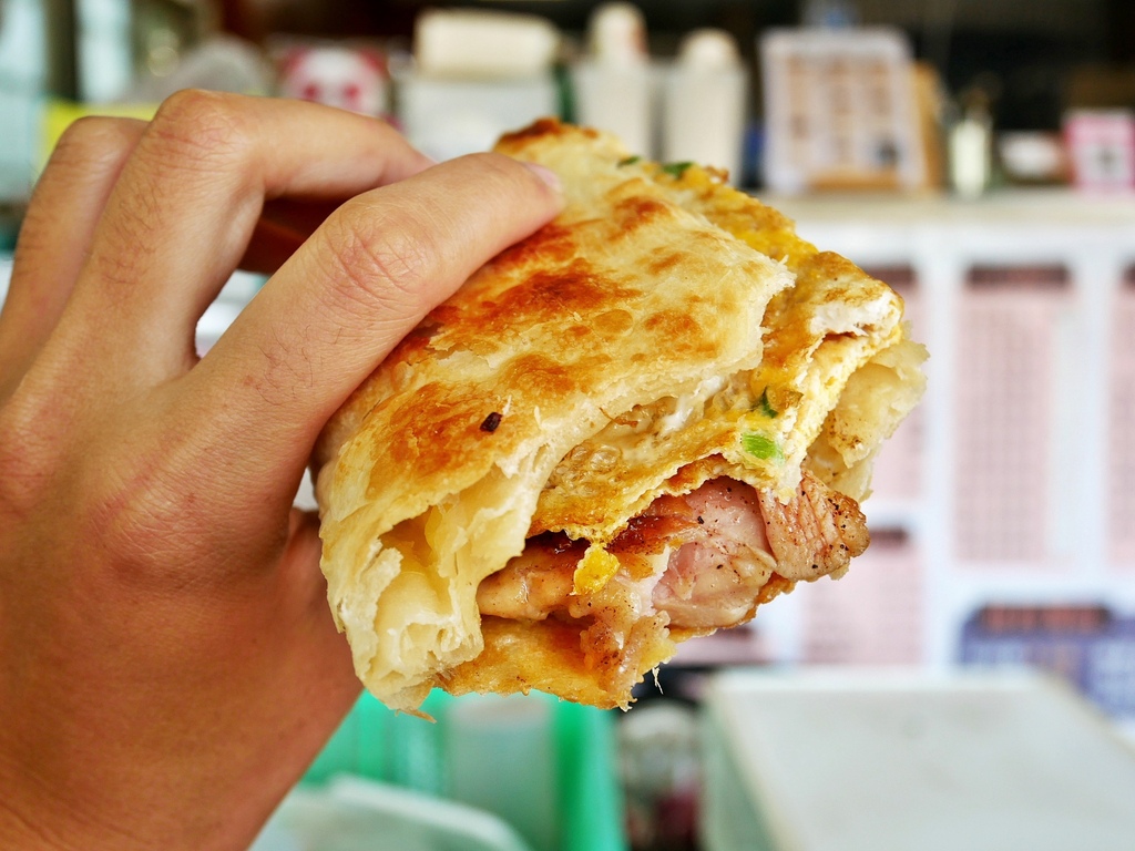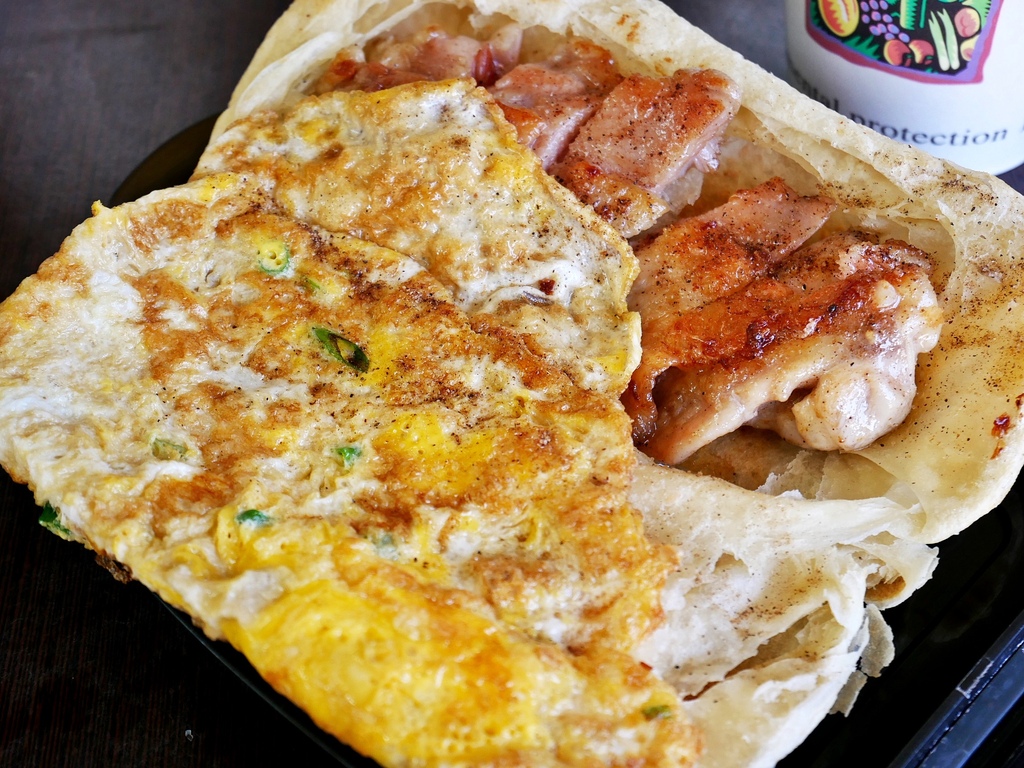加了厚切雞腿的燒餅超大一份,想大口吃肉點這個才有fu,雞腿排帶皮不過雞皮不會太油,肉挺有厚度而且調味夠又不搶戲,加一顆蔥蛋更美味。