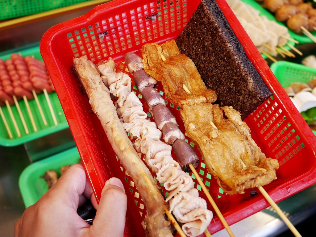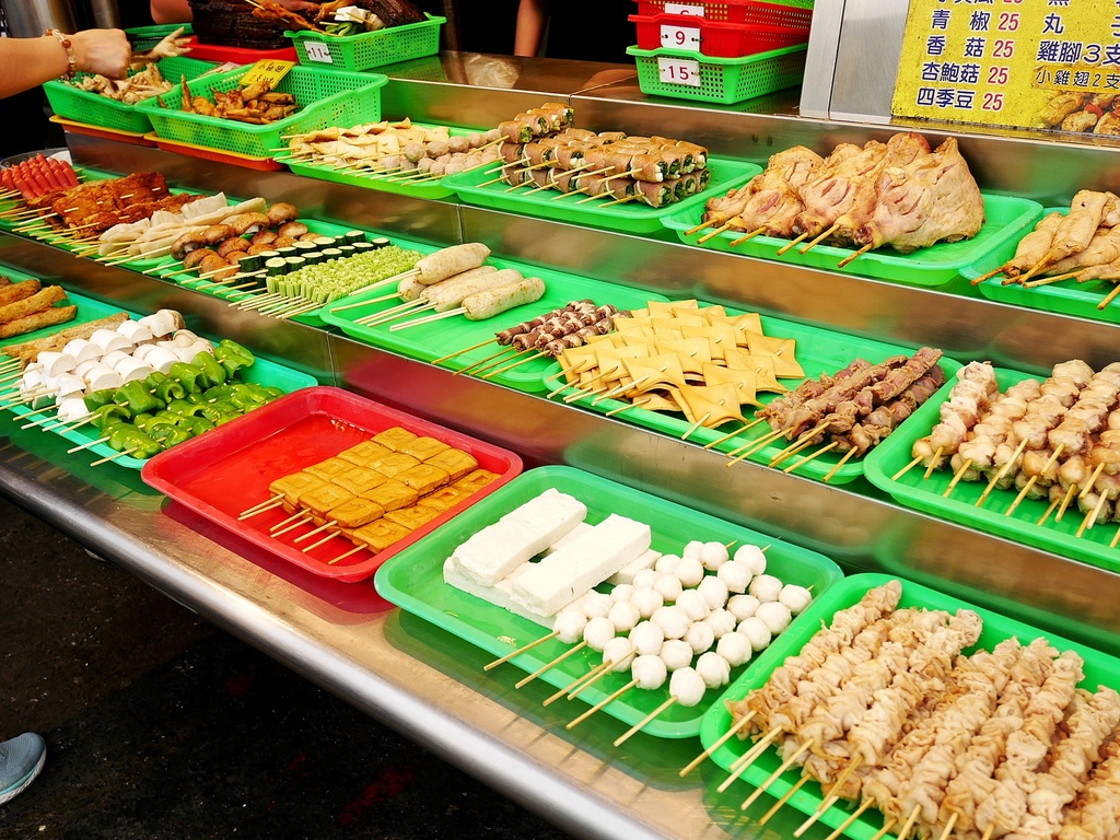 店家的食材排排站擺在攤位上,看起來都很新鮮,不過最近溫度很高,如果可以設計個冷藏櫃或是稍微罩起來再鋪個冰磚會更保鮮。