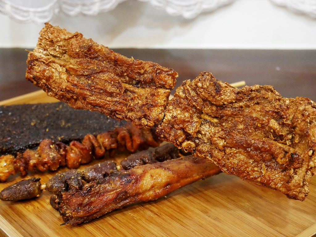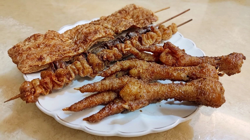 二訪買了網友力推的雞腳,靜香家從小就愛買整包滷雞腳會加配電視,後來分享炸物被網友推坑炸雞腳意外發現新天地,沒想到還有先炸後烤的吃法也太新奇。雞腳吃起來蠻特別,除了皮QQ的之外,還多了醬汁的鹹甜滋味,還不錯吃但我還是更愛滷雞腳。