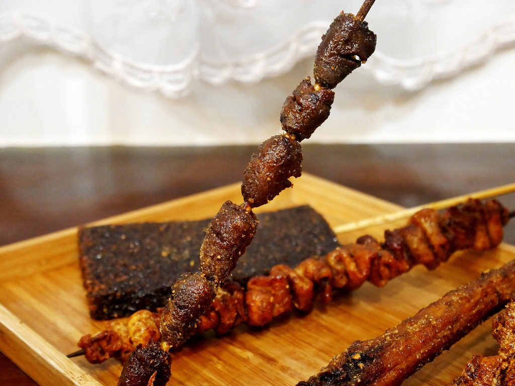 草屯大觀市場/大觀夜市內的「林家烤肉屋」,是人氣很高的周末限定串燒攤。之前分享草屯七里香的時候,好多網友大推這間叫我一定要試試。不得不說串燒先炸後烤卻不油膩,營造出的酥脆口感很令人驚喜,搭配上鹹甜醬汁讓人想一串接一串,買過一次就愛上。可惜一周只賣兩天,想吃的朋友記得一出攤就報到,才不會在疊成山的籃子前卻步。