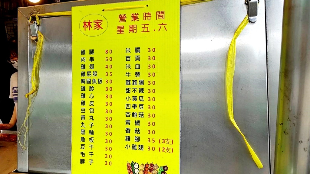 草屯林家烤肉位在芬草路和中山街交叉口,就在吧啦吧啦藥燉排骨斜對面,靜香上次快6點到,前面已經排了5組以上的客人,果然人氣很高。先附上林家烤肉攤菜單,基本會吃的這邊都點得到。