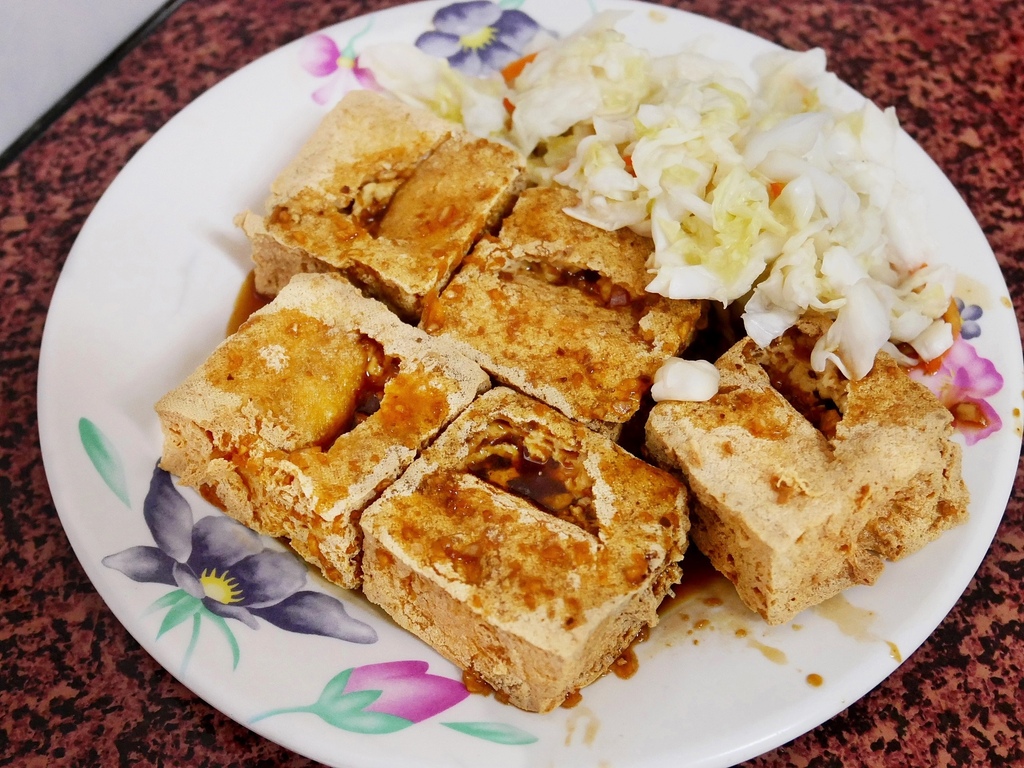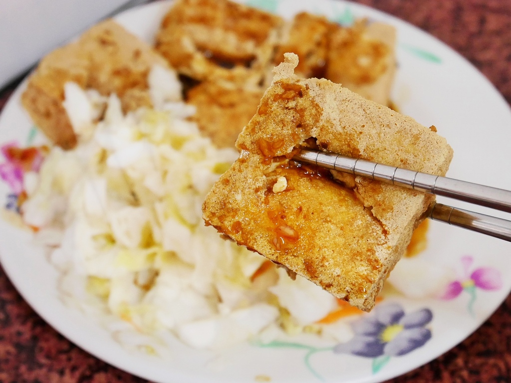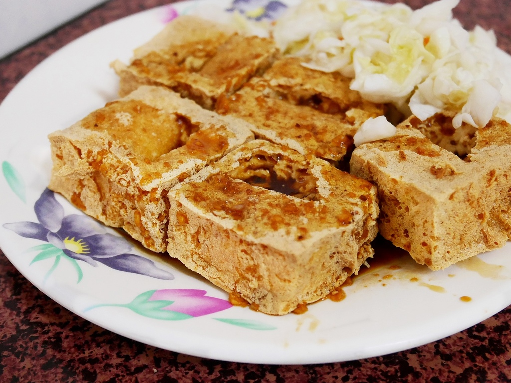 臭豆腐的口感外酥內嫩且多汁,咬下卡滋又不會硬到刮口腔。中間挖洞填入醬汁是我最愛的吃法,醬汁提味又沒有降低豆腐的酥脆度很加分。