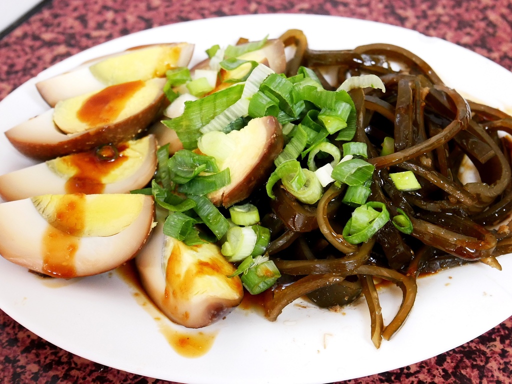 點了幾樣小菜做搭配,滷蛋、海帶的調味夠鹹香又不死鹹,還不賴。