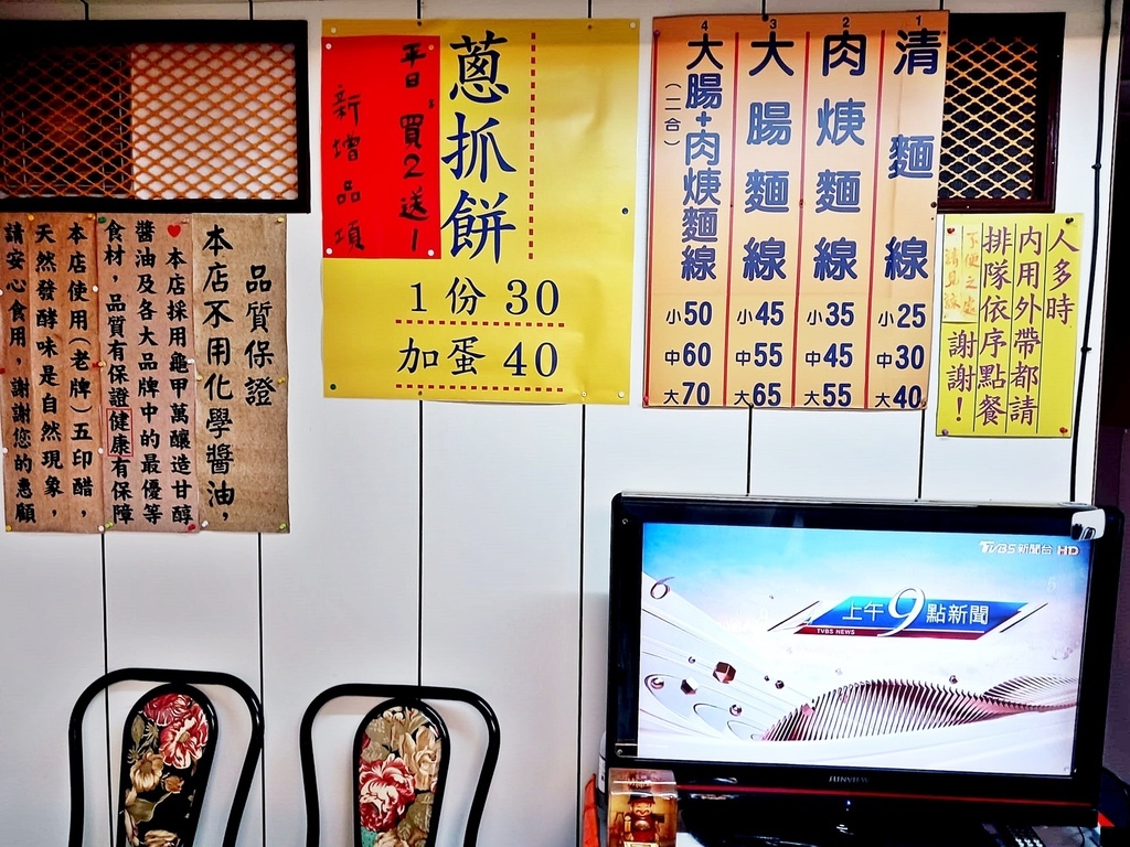 金滿意麵線位在中山路二段上,大橘色招牌還挺醒目,復古風格感覺很傳統味,讓人想一探究竟。外帶的客人依序排隊,如果跟靜香一樣要在店內用餐就不用排隊,入內坐等老闆來點餐即可。