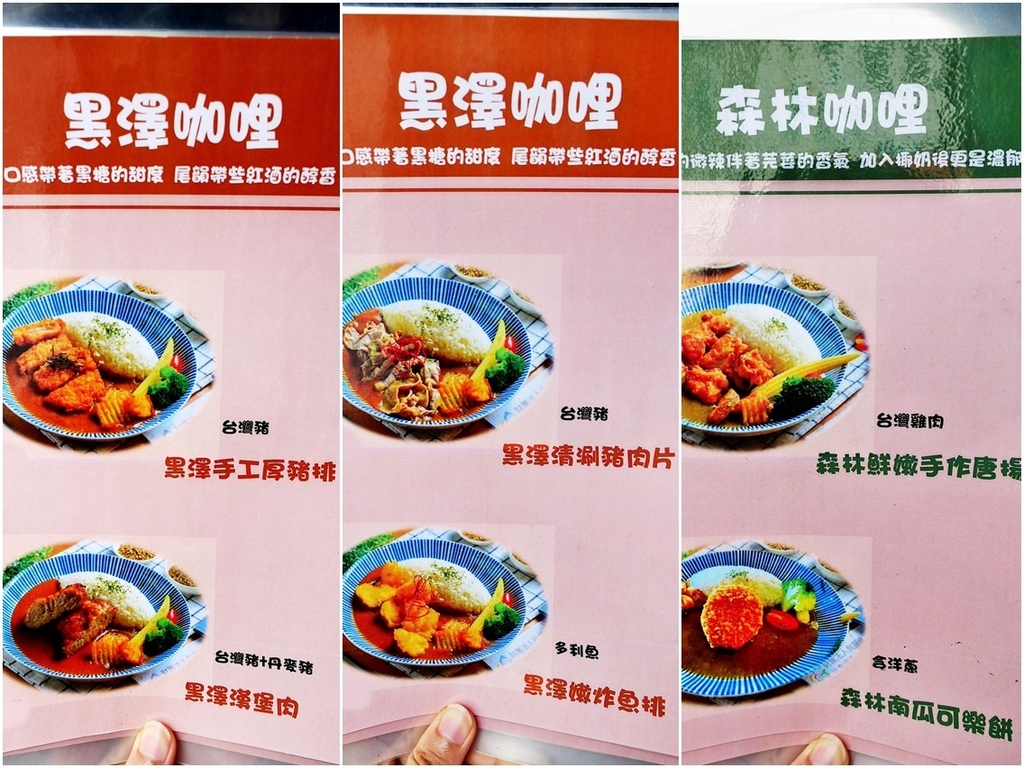雙拼以黑澤咖哩搭配森林咖哩,店家貼心用米飯做分界,兩邊分別挖著吃不混味。兩款咖哩都很香濃,不是稀稀水水的口感。