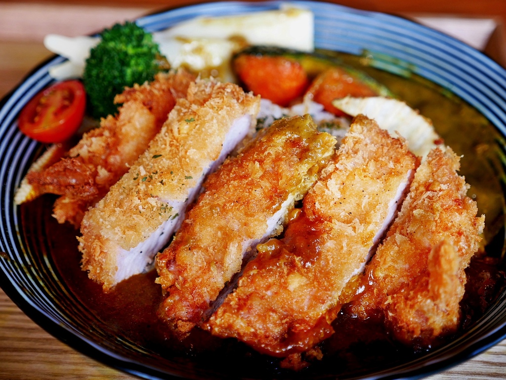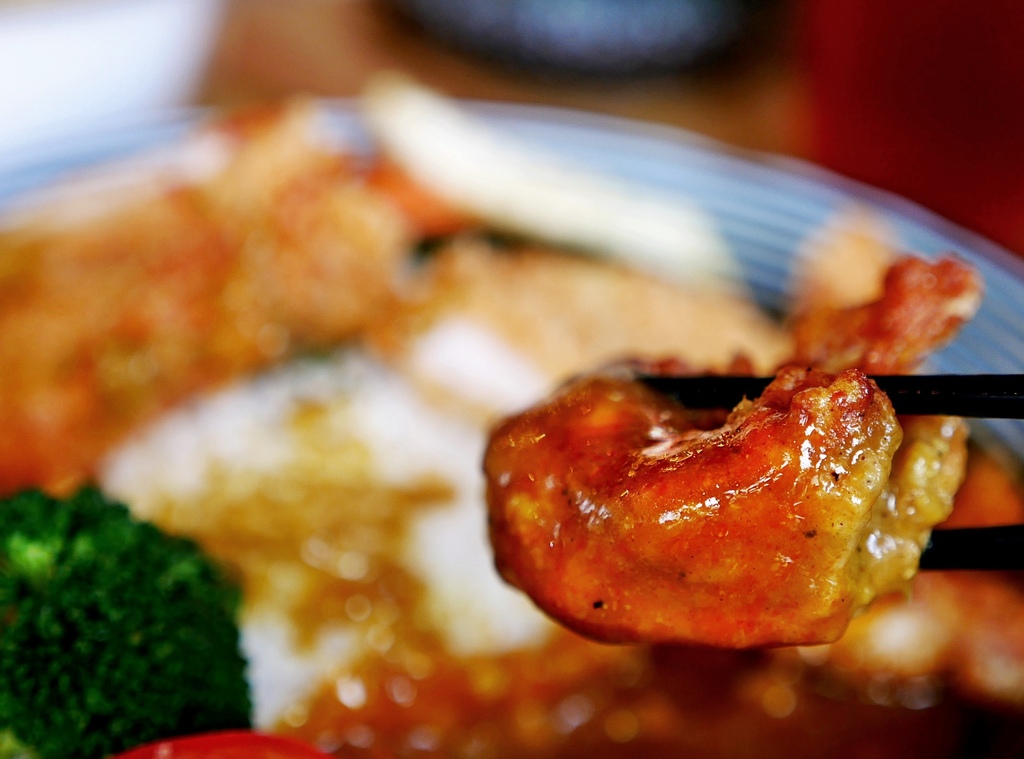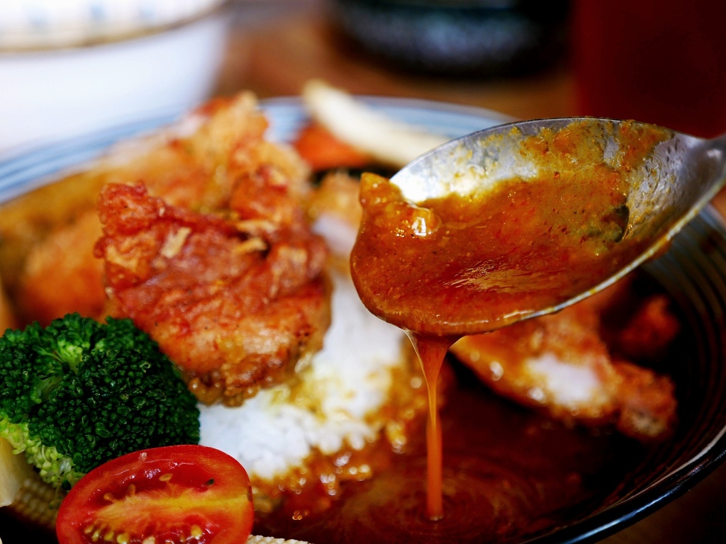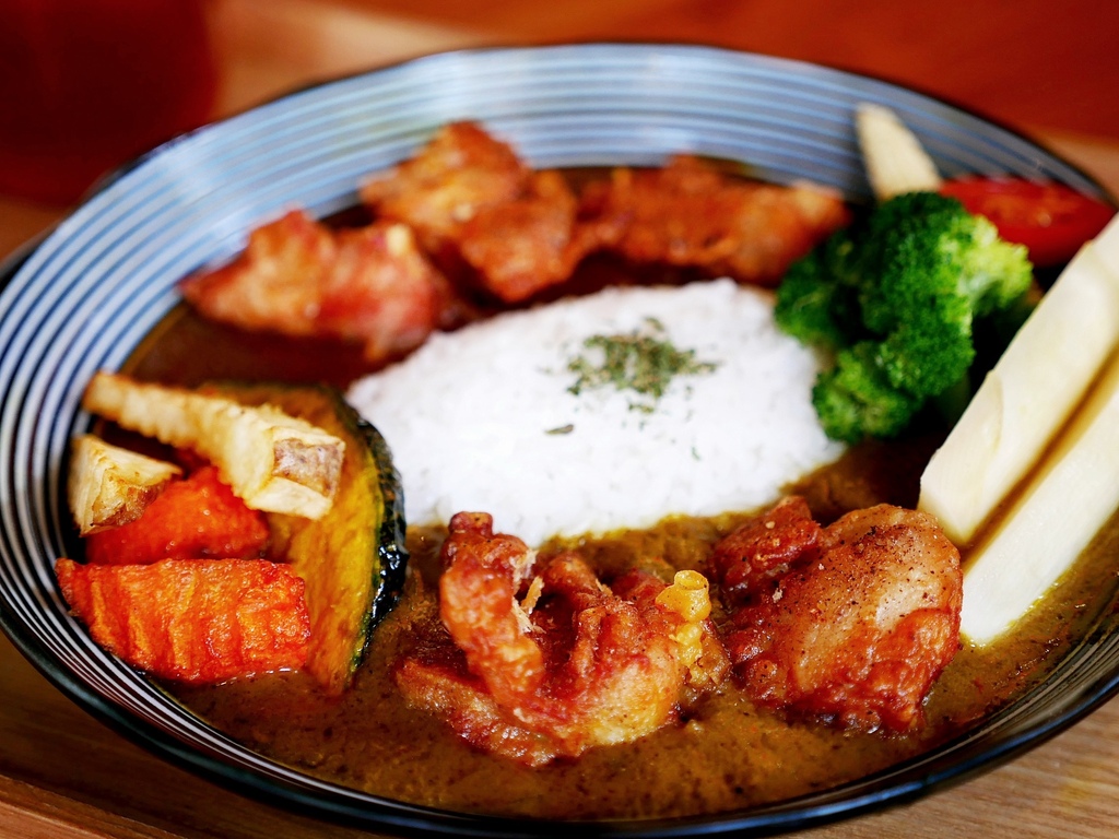 如果你也喜歡日式唐揚雞,那靠山咖哩的唐揚雞千萬別錯過。以薄脆麵衣包裹調味適中的細緻雞肉,帶皮的雞腿肉炸過之後軟嫩多汁且入口不油膩,連長輩跟小朋友都能輕鬆享用。