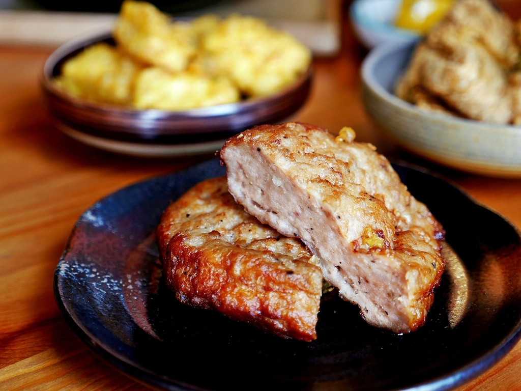 不吃牛、不吃炸物的朋友,推薦漢堡排這個人氣選項給大家。以豬肉為主要食材,拌入洋蔥、黑胡椒去提味,即使不沾醬都夠味。漢堡排相當大塊,表面煎到上色並鎖住肉汁,所以剛上桌的漢堡排咬下濕潤多汁很不錯。