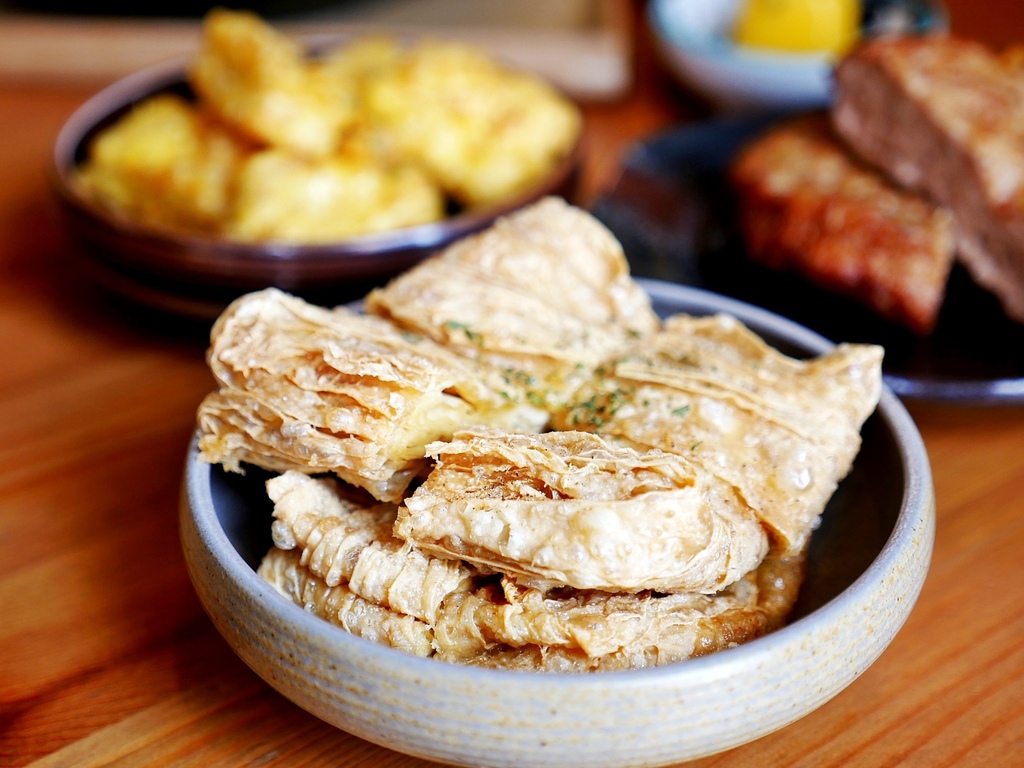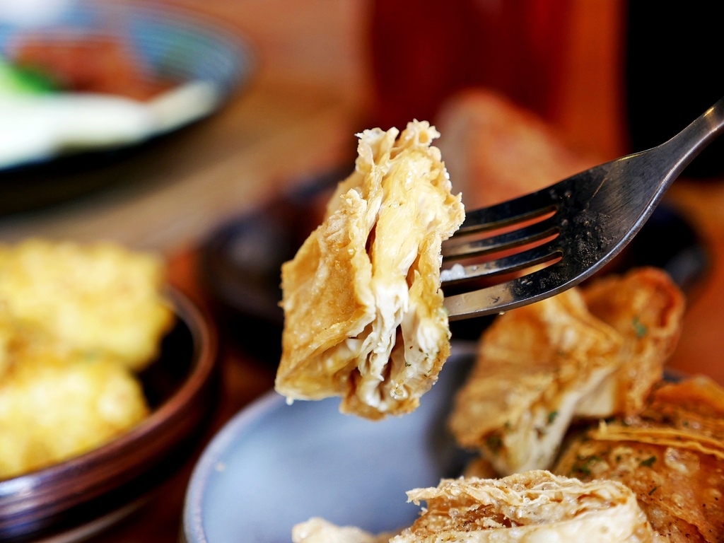 表面炸到金黃色的豆包剛上桌非常酥脆,但放涼之後麵衣吸到空氣中的水份,酥脆度會大大下降,記得趁上桌快速掃光這一盤。