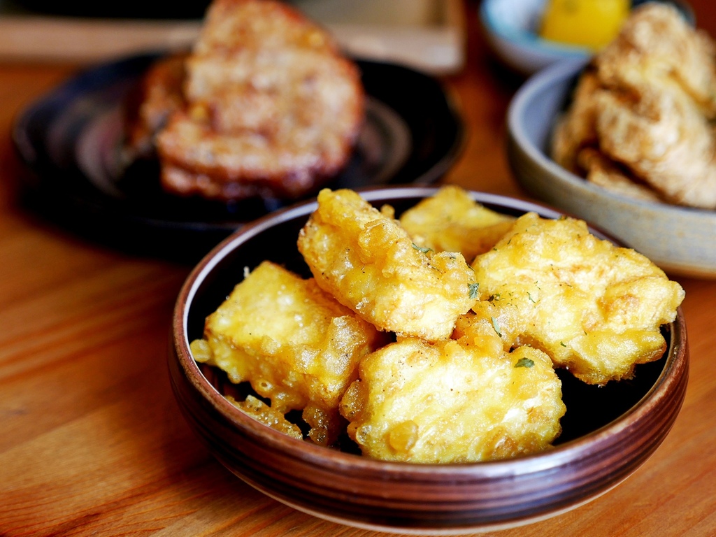 雞蛋豆腐真的是怎麼料理都好吃,靠山咖哩的豆腐裹上一層薄厚適中的麵衣,營造外酥內嫩的口感,不用調味就能瞬間吃光光。