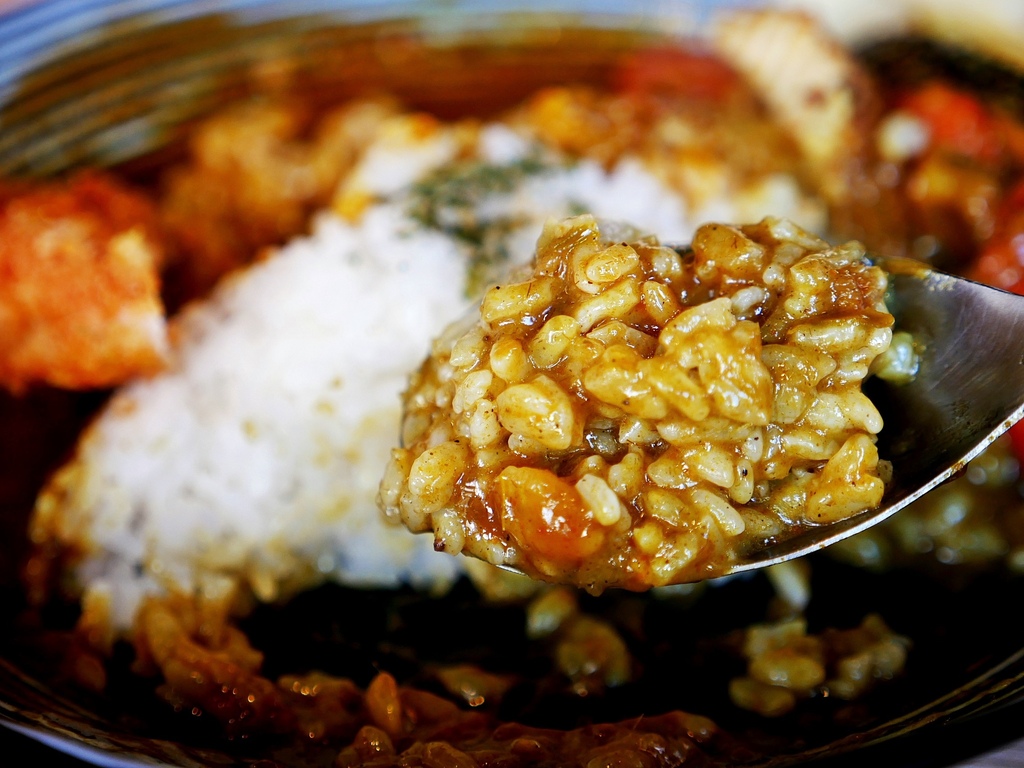 黑澤咖哩以大骨搭配蔬菜去熬煮,再添加些許紅酒提味,是比較偏日式的風味。添加紅酒在其中,入口不會有明顯酒味,卻有大大提香的作用。