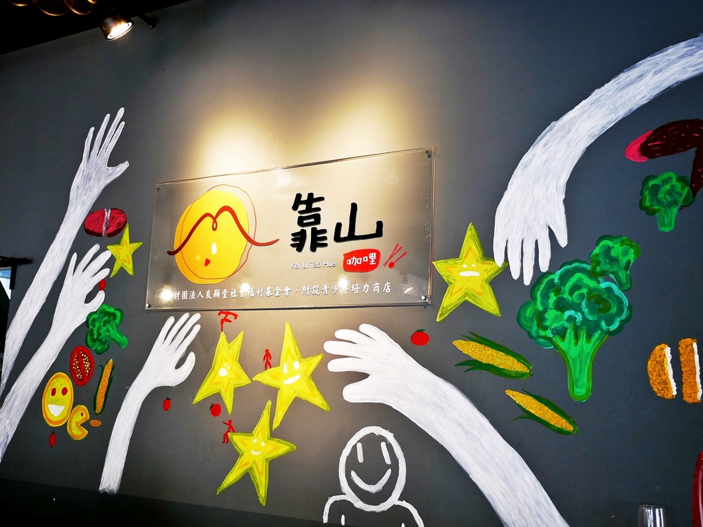 有朋友跟靜香一樣,進到店內就先被牆上的作品以及貼在包廂外的照片給吸引嗎? 這些不僅是裝飾,更是滿滿的故事。進一步了解才知道,原來靠山咖哩是良顯堂社會福利基金會旗下的一個分支。