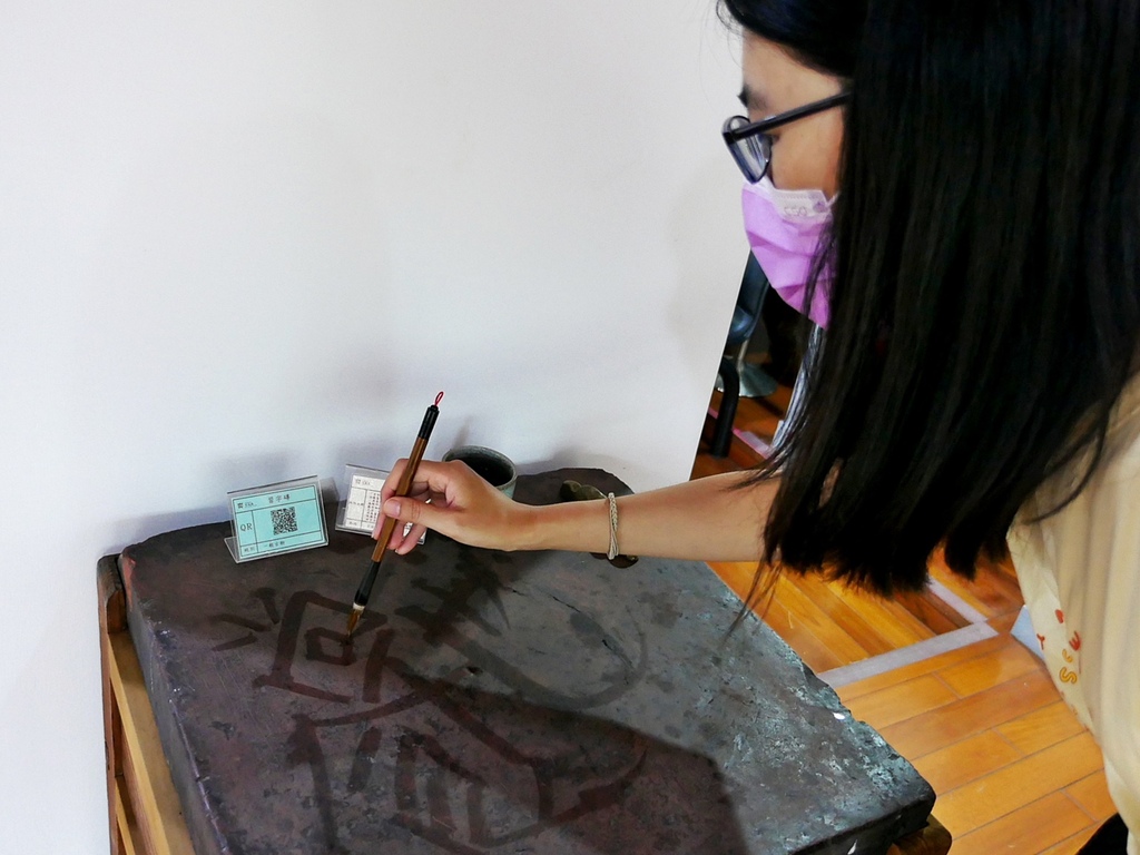 以前有歐陽脩拿著蘆荻在沙地寫字,後也有拿毛筆蘸水在陶製的習字磚上書寫,這跟靜香小時候練毛筆字使用的水寫布一樣環保,就是重了點(笑