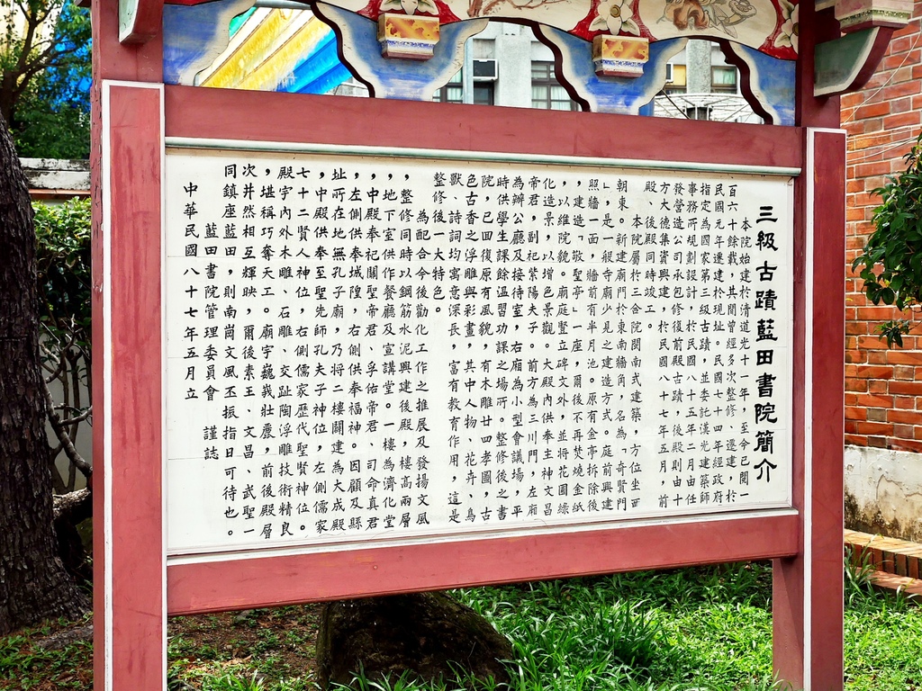 藍田書院的主建築相當古色古香,結合各式精美的交趾陶,是最經典的閩南式建築。