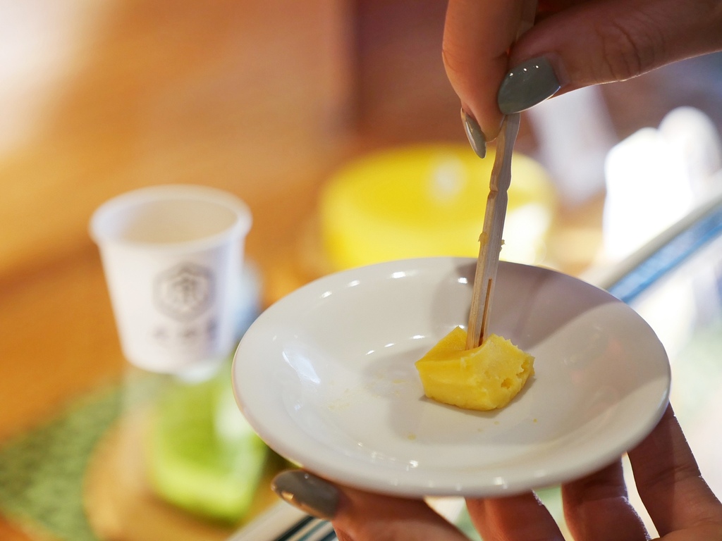 除了常溫的伴手禮之外,還有多款人氣冷藏甜點也很受歡迎。憨吉濃濃乳酪不愧是銷售第一名,入口能品嘗到豐富地瓜香氣,特濃的乳酪又不會太厚重真的很好吃。