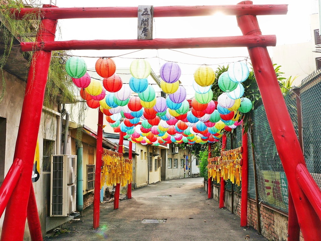 菓寮店旁設有復刻的鳥居,掛上繽紛燈籠是不少人到訪必留影的人氣打卡點。