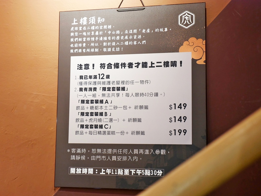 到虎珍堂菓寮店二樓內用有小小的限制,要年滿12歲且消費限定套裝組,一個人就要配一套,用餐時間是40分鐘。